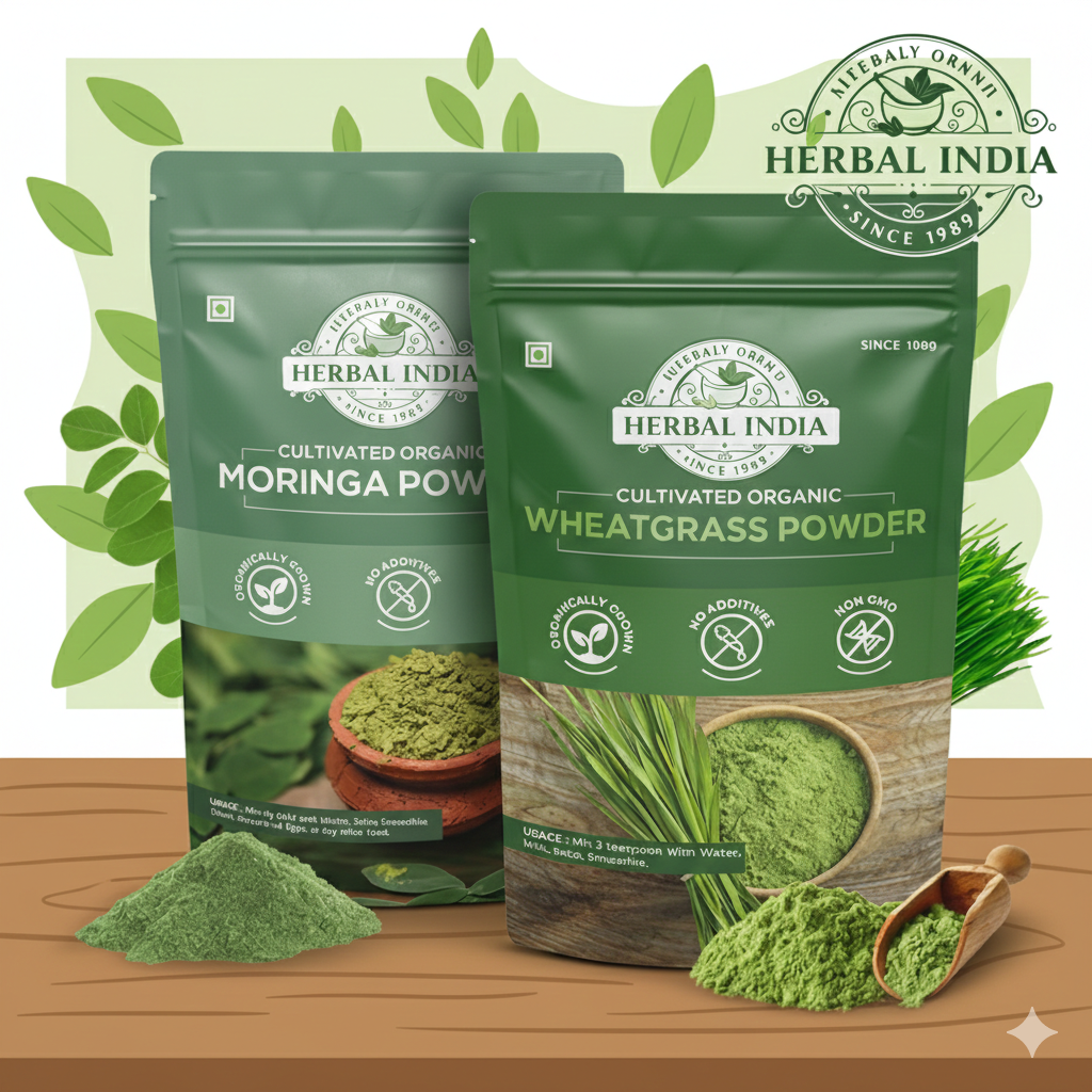 Experience the healing power of nature with Herbal India Moringa Leaf Powder — made from 100% pure, organically grown moringa leaves, carefully shade-dried and finely milled to preserve all nutrients.